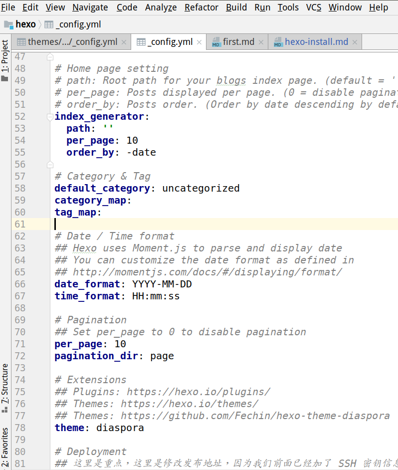 - 官网对此配置的介绍:https://hexo.io/zh-cn/docs/configuration.html