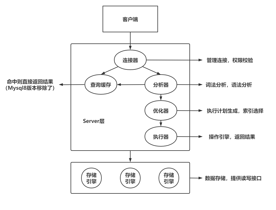 然后 执行器 就会根据 查询优化器 生成的一套执行计划,不停的调用 存储引擎 的各种接口去完成 SQL 语句的执行计划
